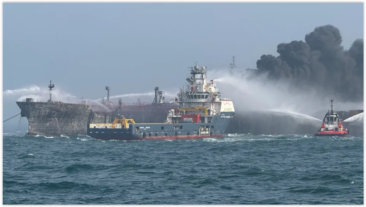 Firefighting Efforts: Both vessels remained on fire as of the latest reports, with firefighting