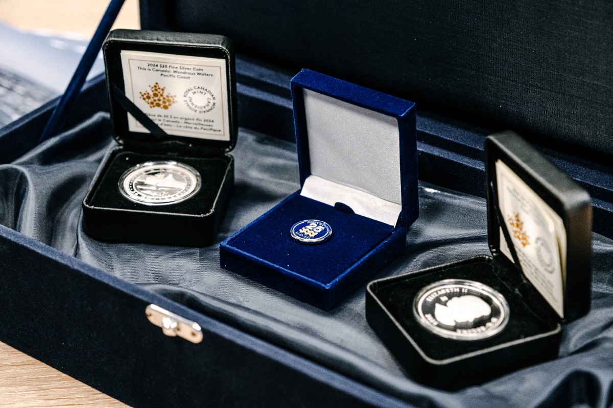During the event, the traditions of shipbuilding were honoured when BC Ferries CEO Nicolas Jimenez laid a silver Canadian Dollar on the two keels. The 1 oz pure silver coin, depicts five orcas, reflecting the beauty of Canada's west coast waters where the ferries will sail.