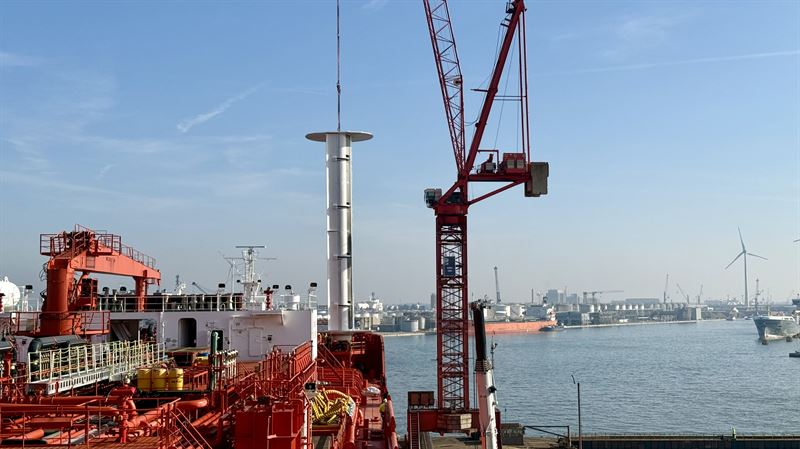 The installation took place at the EDR Antwerp Shipyard as the final stage of a thorough process. The deck of a chemical tanker is covered in pipes for the multiple cargo tanks. Integrating the sail foundations required careful planning, and the installation had to be specifically designed to ensure a seamless fit with tanker operations while considering the vessel’s air draft limitations.