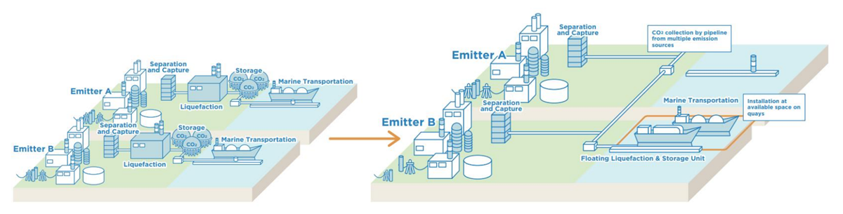 Carbon Capture, Utilization and Storage (CCUS)**** is one area that is expected to play a certain role in achieving a carbon-neutral society. However, issues need to be addressed, such as reducing overall costs and securing land for liquefaction and storage facilities. By utilizing this FLSU, the cost of CO2 liquefaction and the land area required onshore in the CCUS value chain can be reduced, expanding the possibilities for realizing CCUS.