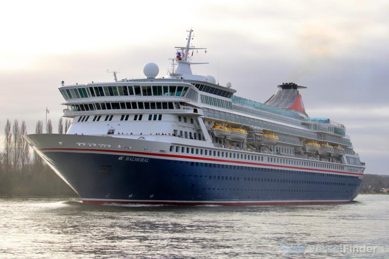 The current position of BALMORAL is at North East Atlantic Ocean reported 0 min ago by AIS. The vessel is en route to the port of Southampton, United Kingdom (UK), sailing at a speed of 15.1 knots and expected to arrive there on Dec 16, 03:45. The vessel BALMORAL (IMO 8506294, MMSI 308785000) is a Passenger (Cruise) Ship built in 1988 (37 years old) and currently sailing under the flag of Bahamas.